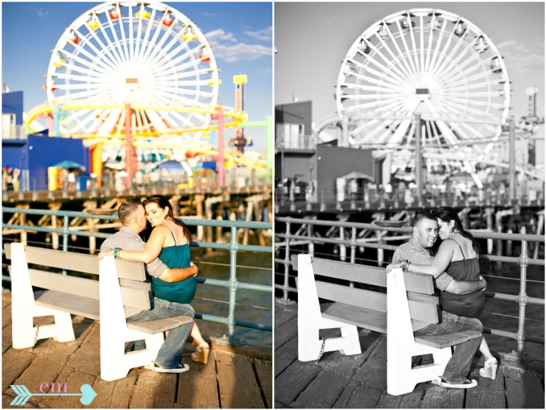 Lisett and Marco wanted to go back to where he proposed, the Santa Monica Pier, to relive the moment and make new memories in order to capture the perfect image for their save-the-date announcement. Lisett, of course, was completely prepared and had all sorts of ideas up her sleeve. You have got to check out the vibrant colors that just popped up everywhere…it was like the pier knew we were there to make magic!