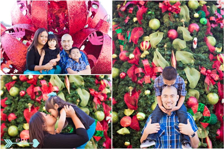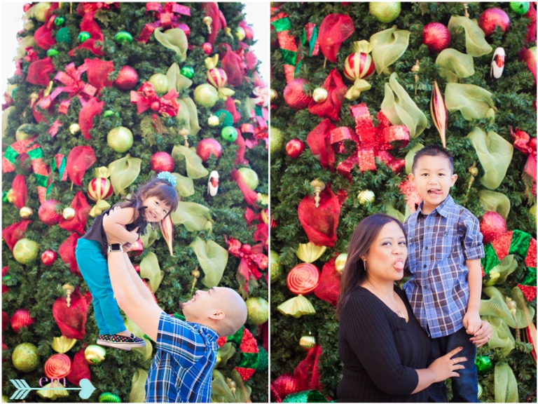 There is something magical about capturing smiles in front of sparkly green and red anything. No matter if it’s smack in the middle of summer I can begin to imagine glowing Christmas lights and the smell of freshly baked sugar cookies. That’s why if you want me start day dreaming show me any old tree filled with red ornaments and BAM! I’m gone into thinking of sugar plums dancing in my head. I love ALL holidays, and this one is like I mentioned the most magical. The Lee family had me jumping for joy during their Holiday Session.