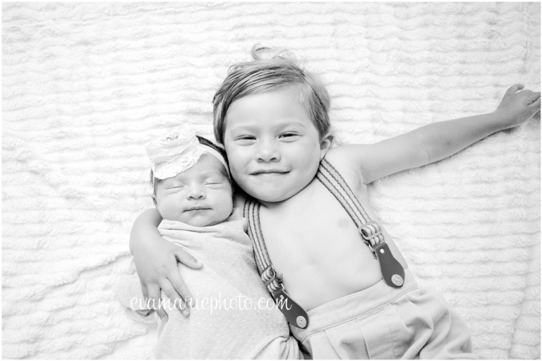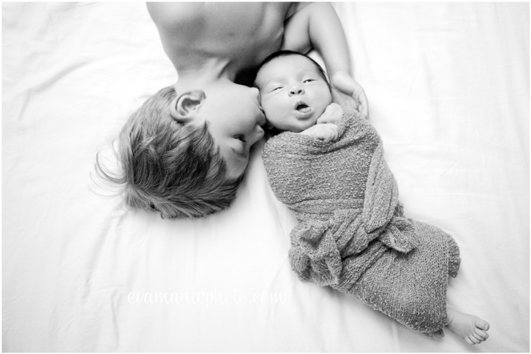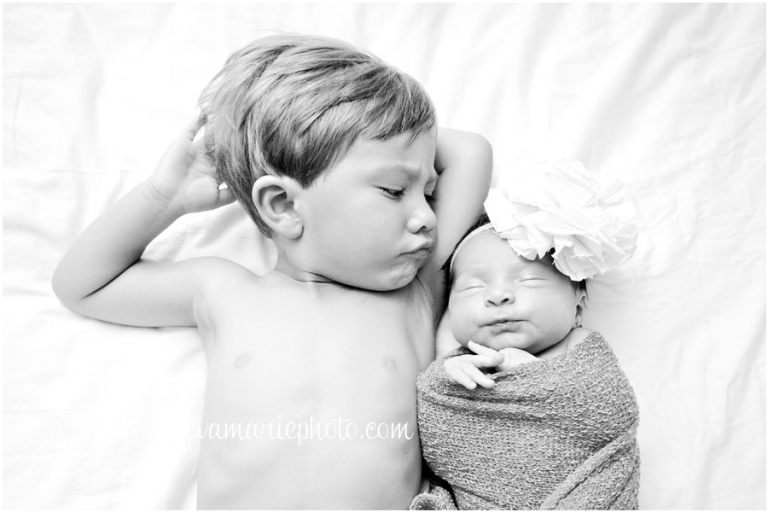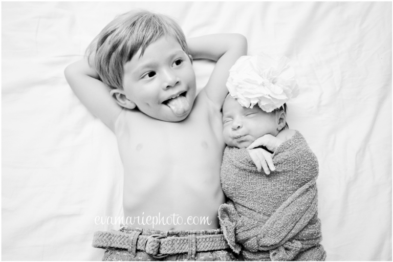 This has got to be one of my top favorites. Baby girl is like, “Please don’t squish my one week old body.” While he is like,  “You are my sister and I’m going to protect ya, ya hear!”What in the world are they thinking about? Or are they singing a little medley?This one is my favorite. He is a proud big brother and she is a content little sister.“Kiss me you fool!”
