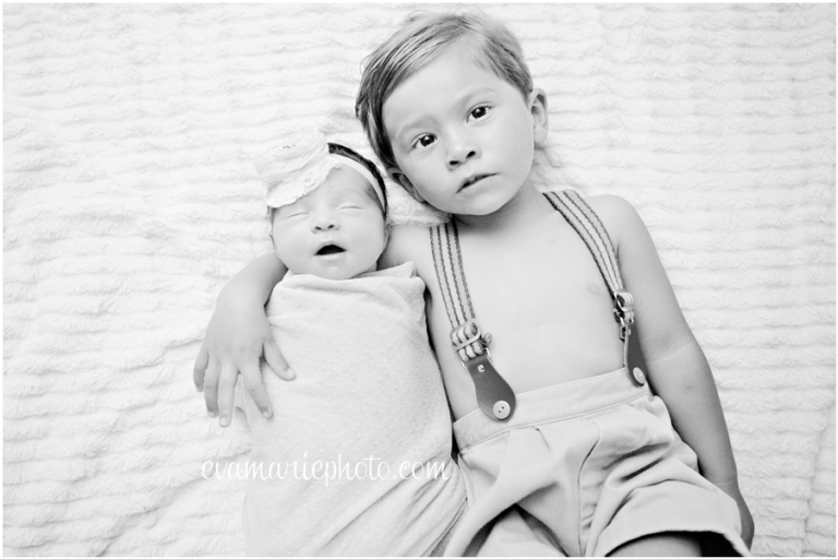This is session number three ya’ll. I hope you all aren’t bored to death with my children yet. It is really important for me to document this new little being in our lives as well as keep up my photography skills-can’t get rusty now! Sibling relationships are fascinating to me. I think back on all of the laughable moments, cat fights and intense conversations I’ve had with my four sisters and I couldn’t have been more grateful to have them in my life. Of Course, every one of us has gotten on the other’s nerves or borrowed a new (tag still on) top from the other’s closet with out asking first. So what happens after this? You pull hair, call each other some creative names, rehash some old boyfriend dirt from the past and repeat. Oh the joys of having sisters. But really though, I love them and wouldn’t trade my sisters for the world. Now, getting back to why I decided this as my third session. It was to watch and learn how a brother and sister relationship actually develops. I’ve always, I mean ALWAYS wanted a big brother. For one, I’m the eldest so just an older anything would have been cool, and second I always longed for a brother to put their arm over my shoulder when I fell down and cut my knee.  Now, it’s only fitting to start this post with… well of course the big brother placing his arm around his little sister.